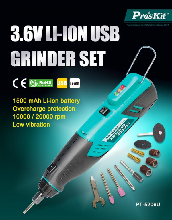 Pro'sKit USB Grinder Set PT-5206U 3.6V Li-Ion Cacciavite Elettrico Foratura, Lucidatura, Incisione di Taglio Rettifica Kit Macchina