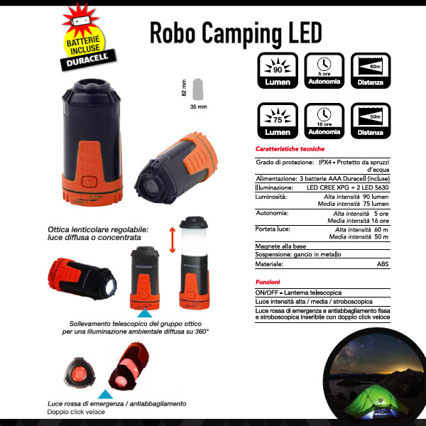 CFG ROBO CAMPING MINI TORCIA/LANTERNA 90LM 60MT 16H AUTONOMIA