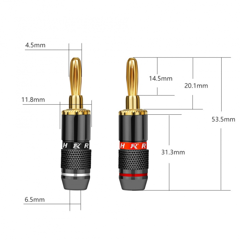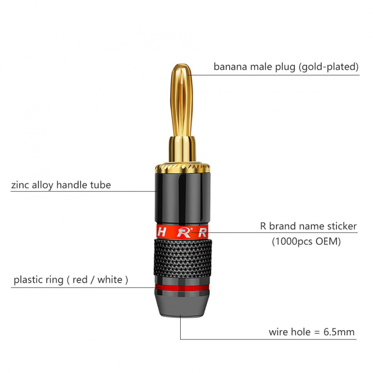 COPPIA CONNETTORI A BANANA MASCHIO PLACCATI ORO FISSAGGIO A VITE PER CAVI DI POTENZA