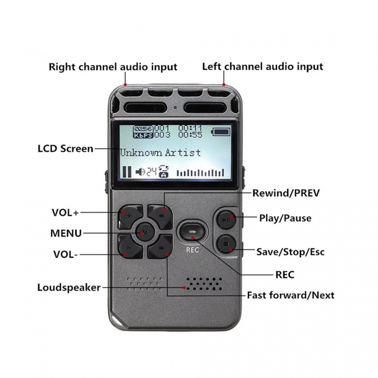 3. Questo dispositivo funziona come registratore vocale e lettore MP3. Con un microfono esterno, puoi anche utilizzarlo come registratore vocale digitale per la registrazione di lezioni, riunioni, interviste.