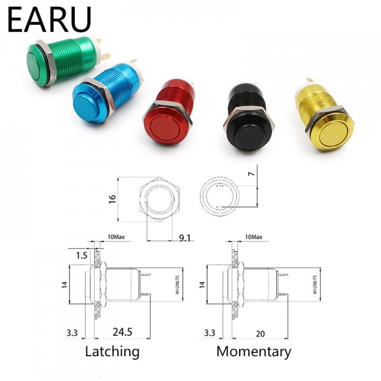 INTERRUTTORE A PULSANTE METALLO TESTA PIATTA Ø12mm IP65 NERO