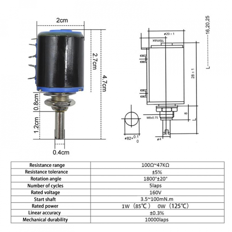 POTENZIOMETRO MULTIGIRI A FILO DI PRECISIONE 4,7K OHM 1W 5%