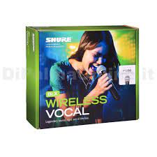 Kit radiomicrofono analogico per voce. Composto da un trasmettitore a mano BLX2/PG58 e un ricevitore BLX4. Banda M17 (662 – 686 MHz).