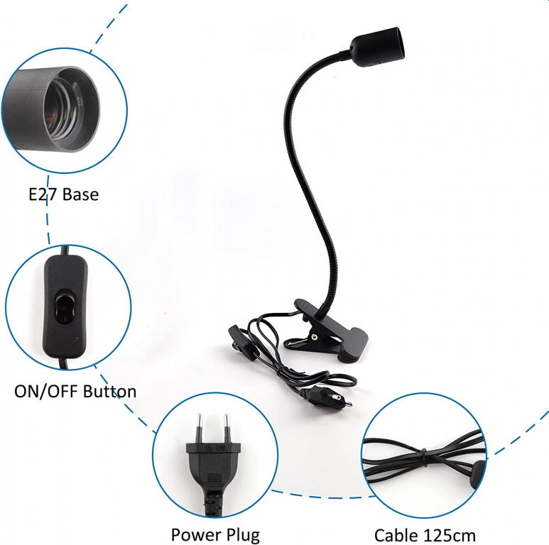- ??Facile da Spostare?Con un cavo lungo 125 cm, dotato di interruttore on/off e spina europea, estende notevolmente il raggio di movimento della lampada, facile da usare, comodo e pratico. Il collo d'oca deve essere curvo ( forma) per sostenere il peso; il bulbo non deve pesare più di 500.