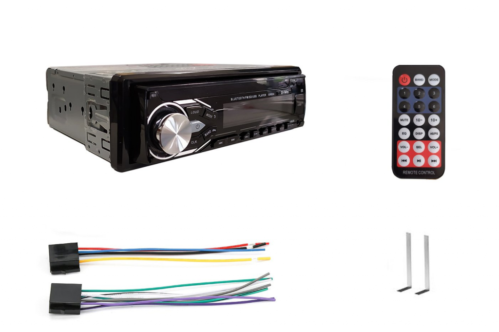 Stereo per auto Colore:nero Ingresso USB e AUX Bluetooth Controllo remoto con telecomando Frequenza: 87.5-108MHz Impedenza: 4-8 Ohm Voltaggio: 12vdc Dimensioni: 14x18x6 cm circa Peso: 518g circa