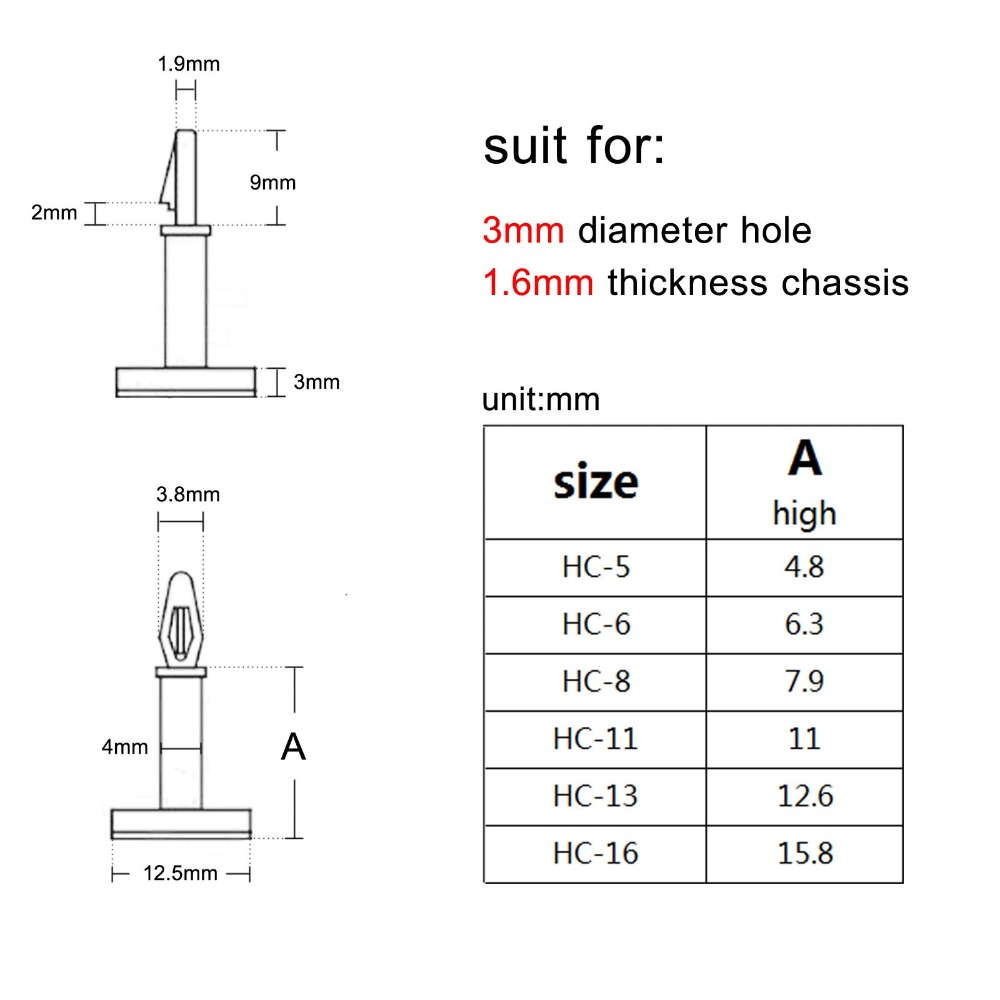 DISTANZIALE SNAP IN NYLON ADESIVO PER CIRCUITI STAMPATI HC5 4,8mm