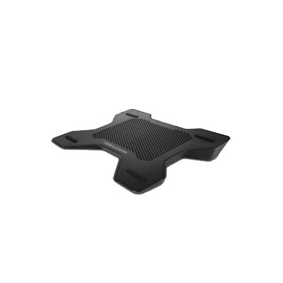 Cooling pad rialzato a forma di X con ventola grande centrale.