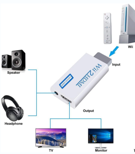 L'adattatore da Wii a HDMI si può collegare direttamente agli altoparlanti del PC e alle cuffie. Senza adattatore di alimentazione, senza cavi disordinati: un unico cavo HDMI, plug and play per effetti video/audio realistici sul tuo televisore e monitor.