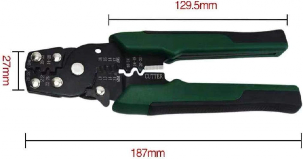 PINZA CRIMPATRICE PER TERMINALI NON ISOLATI AWG 14-28 TAGLIERINA SPELAFILI DA 0,6-1,3mm