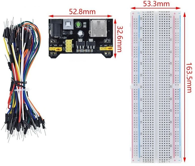 KIT BREADBOARD CON CAVI JUMPER E MODULO ALIMENTAZIONE