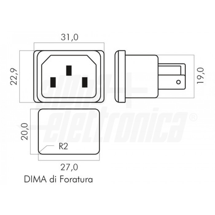 VASCHETTA DI ALIMENTAZIONE MASCHIO IEC C14 VDE DA PANNELLO AD INNESTO 10A