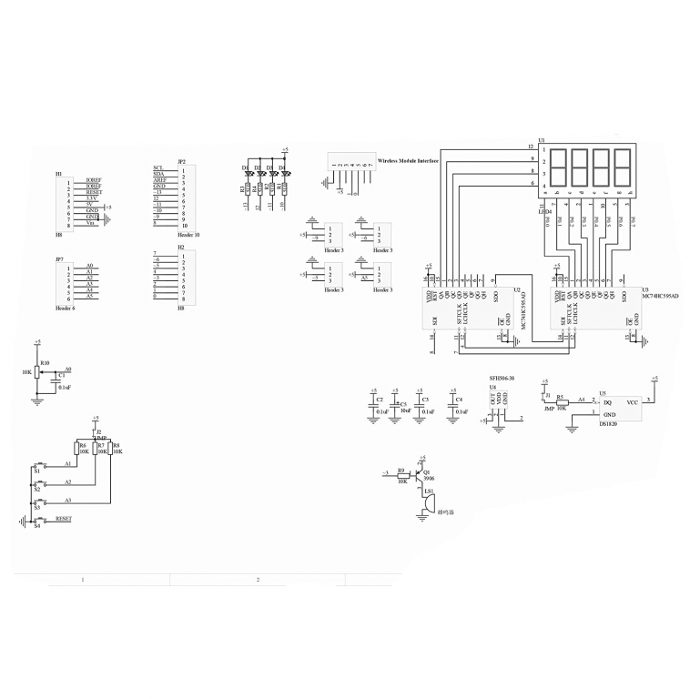- Quattro digitali (utilizzando il driver 74HC595 provinciale IO learning SPI), è possibile eseguire il test del display digitale (può visualizzare temperatura, tensione, valore del contatore, ecc.).