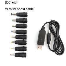 Cavo con convertitore DC/DC step-up integrato in un connettore USB. È in grado di convertire la tensione di 5 VDC in ingresso (connettore USB), in una tensione di uscita a 9 VDC (circa 100 mA) disponibile tramite plug DC (5,5x2,1 mm). Lunghezza totale del cavo: circa 1 metro.