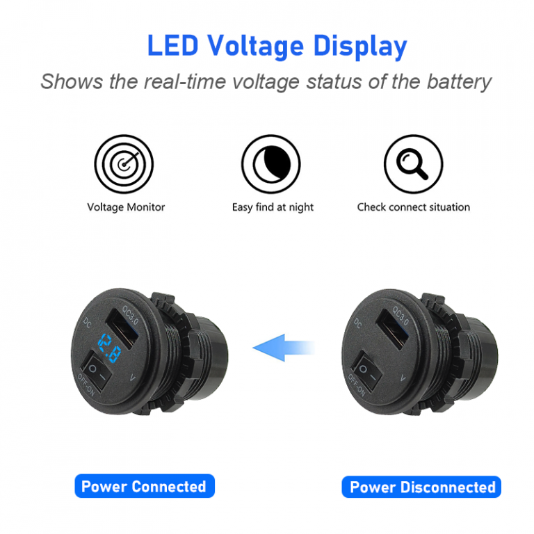 PRESA USB CON DISPLAY E INTERRUTTORE DA PANNELLO 12V/24V OUT 5V 3.1A ROSSO