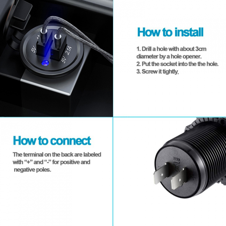 * Doppia presa per caricabatterie USB 5V/3.1A e 4.2A presa di corrente impermeabile con luce LED blu.