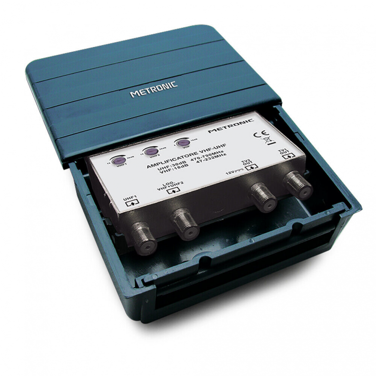 Dotato di 2 ingressi (UHF+VHF, UHF) e 2 uscite TV.