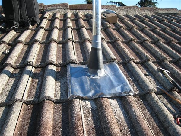TEGOLA 40X50 FORO CENTRALE IN PIOMBO PER ANTENNA