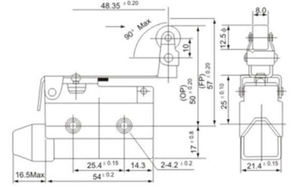 INTERRUTTORE SWITCH DI FINE CORSA ORIZZONTALE CON LEVA A RULLO 250V 10A FATO