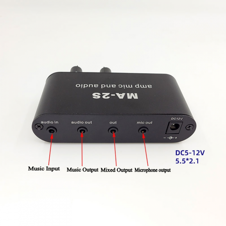 Dopo che il microfono e la musica sono stati amplificati, possono essere spediti in modo indipendente o in uscita mista. Ci sono tre porte di uscita in totale e la porta di uscita mista può guidare direttamente le cuffie per ascoltare.