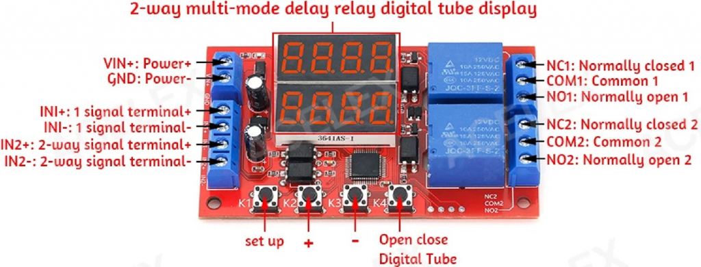 MODULO RELE' TEMPORIZZATORE 2 VIE 12VDC PROGRAMMABILE CON DISPLAY