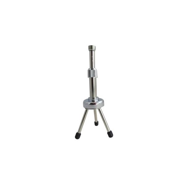 Mini supporto microfonico realizzato interamente in metallo. E' regolabile in altezza da 14 a 19 cm e presenta vite filettata sulla parte superiore per il fissaggio di pinze microfoniche.