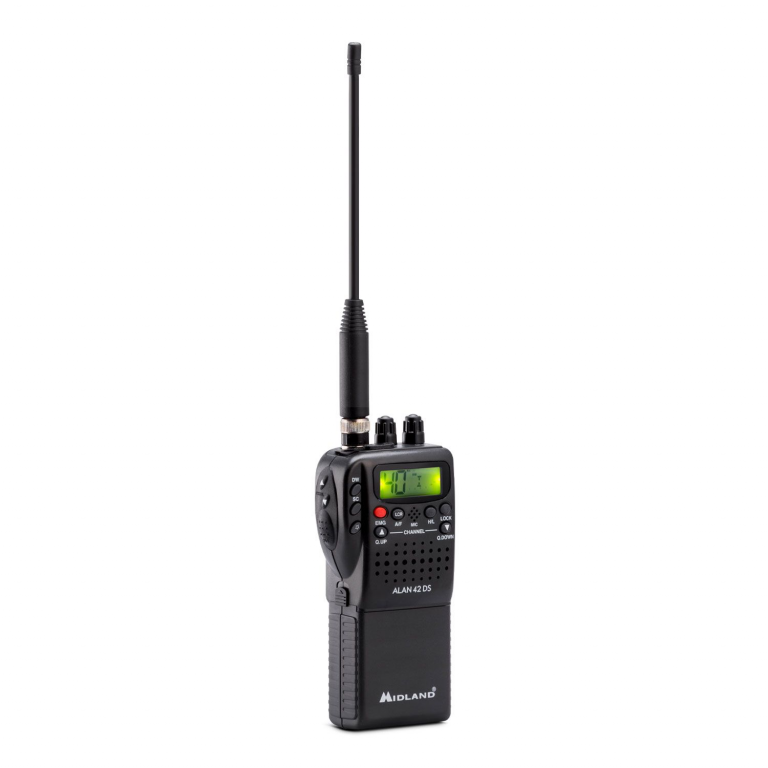 ALAN 42 DS Lithium Edition è il ricetrasmettitore CB portatile best seller di Midland, con digital squelch che si attiva automaticamente alla ricezione del segnale in ingresso eliminando la necessità di un intervento manuale.