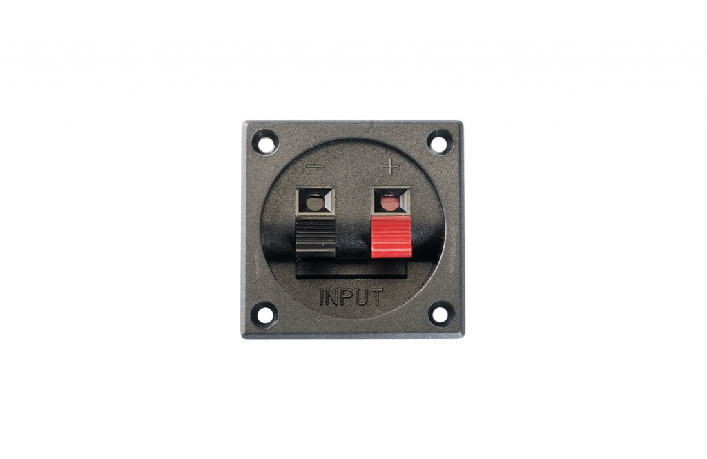 La vaschetta portaterminali Ciare YAC002 è un piastrino quadrato costruito in ABS, di colore nero. È uno tra modelli più semplici ed economici per realizzare le connessioni elettriche nel diffusore. Incorpora due terminali a molla in plastica. Come di consueto, i due terminali della vaschetta si contraddistinguono grazie al loro colore. Il polo positivo è segnalato con il colore rosso, mentre quello negativo dal colore nero. Questo consente di effettuare le operazioni di cablaggio in maniera rapida, semplice e precisa. I colori minimizzano infatti la possibilità di invertire per errore la polarità elettrica quando si effettua il collegamento tra amplificatore e diffusore.