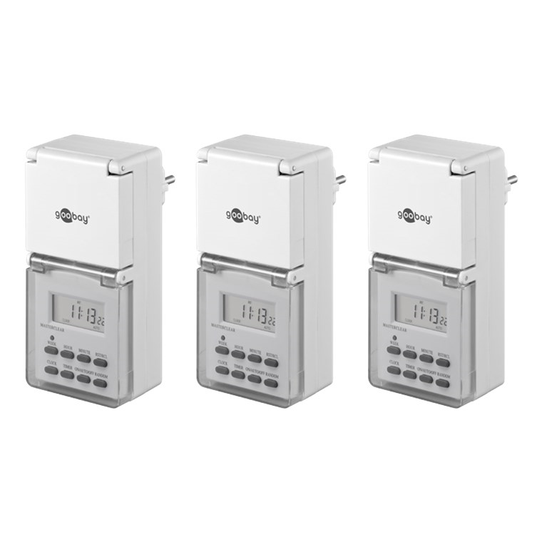 • Il timer digitale per esterni fabbricato secondo la norma IP44 permette un controllo preciso dei dispositivi elettronici.