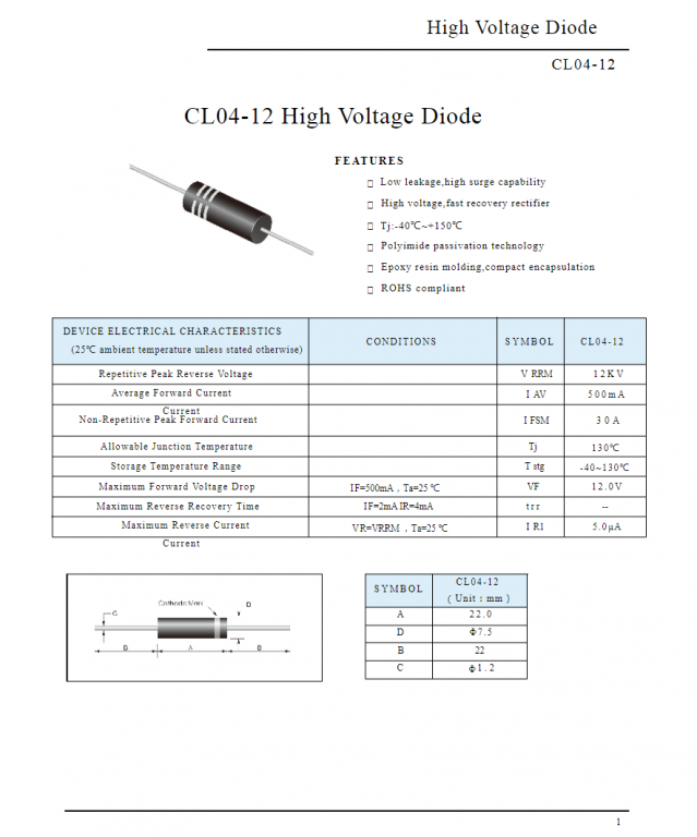 DIODO FORNO MICROONDE 12A 12KV TERMINALI FASTON F 6,3/ OCCHIELLO