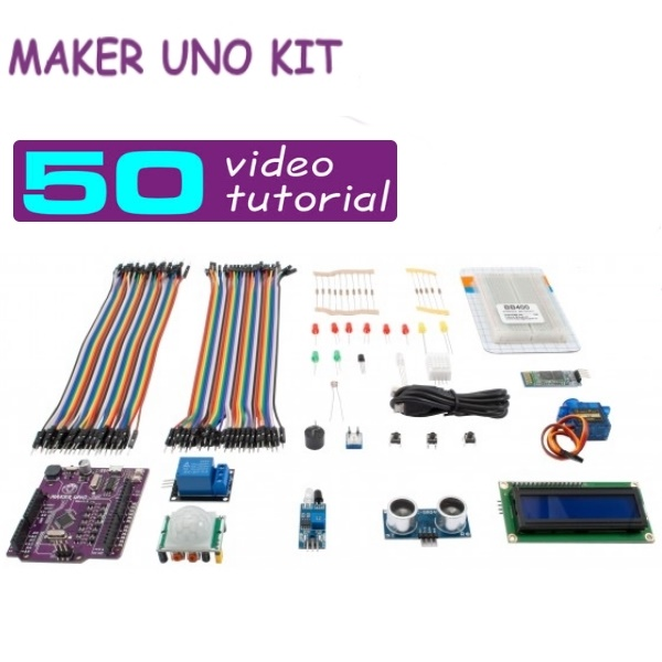 Starter kit destinato a maker, studenti e hobbisti che che vogliono iniziare a programmare con il linguaggio di programmazione di Arduino.