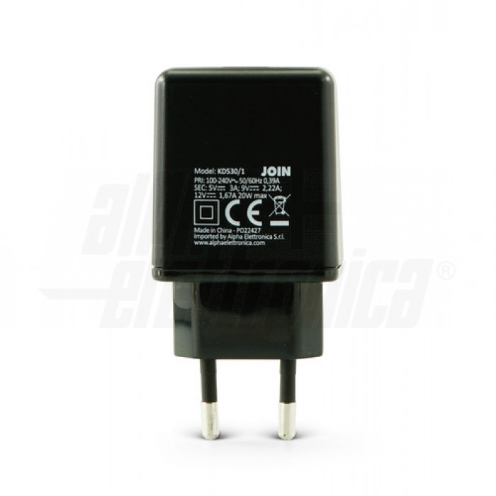 CARICATORE USB TYPE-C RAPIDO 5V-12V 20W 3A POWER DELIVERY NERO