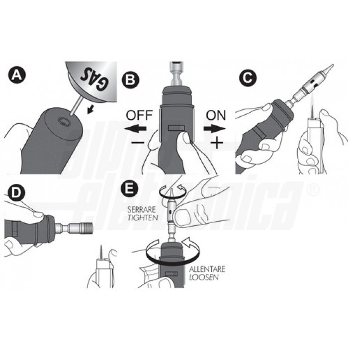 Il saldatore miniaturizzato in formato tascabile è la soluzione ideale per tutti i compiti di saldatura dove non è disponibile la rete elettrica.Torcia con punta e tappo di saldaturaCon accensione manualeCon serratura di sicurezzaLunghezza fiamma: 40mm (regolabile)Temperatura saldante: 200 ~ 400°CTorcia: 1300°CCapacità contenitore gas: 7,5mlTempo di funzionamento (un riempimento di gas): 30 minuti, a metà di impostazione.Butano non incluso