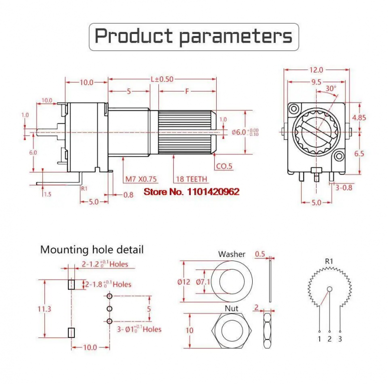 POTENZIOMETRO BLINDATO LINEARE VERTICALE 20K OHM ALBERINO 15mm
