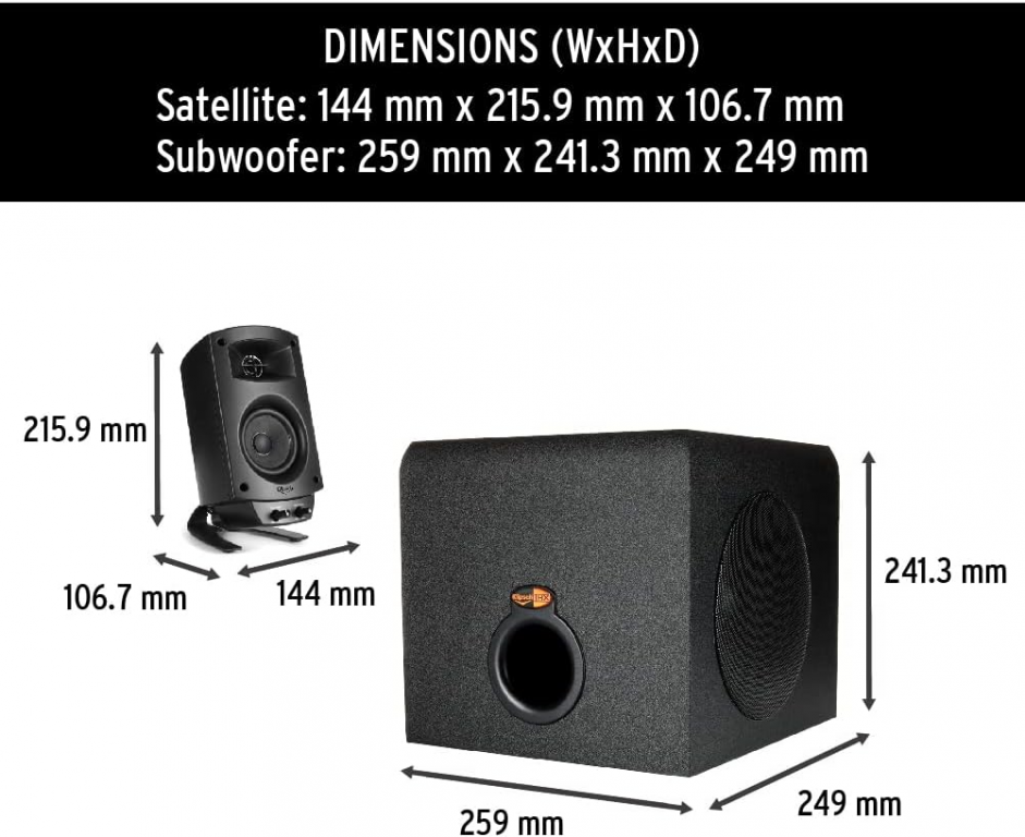 - Comandi semplici - un singolo pannello di controllo sul satellite destro (bluetooth, volume di satelliti e subwoofer, jack per cuffie)