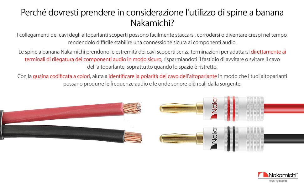 - ? La spina a banana della serie Excel di Nakamichi supportano cavi per altoparlanti da 12 AWG - 18 AWG.
