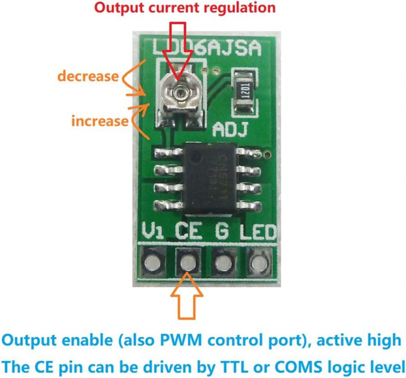 - Tensione di funzionamento: CC 2,8-6 V (per driver LED 3 V 3,3 V 3,7 V 4,5 V 5 V 6 V)
