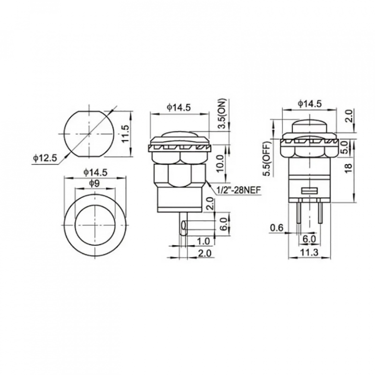 PULSANTE ROTONDO N.C. 12mm DA PANNELLO 3A 125VAC 1,5A 250VAC ROSSO