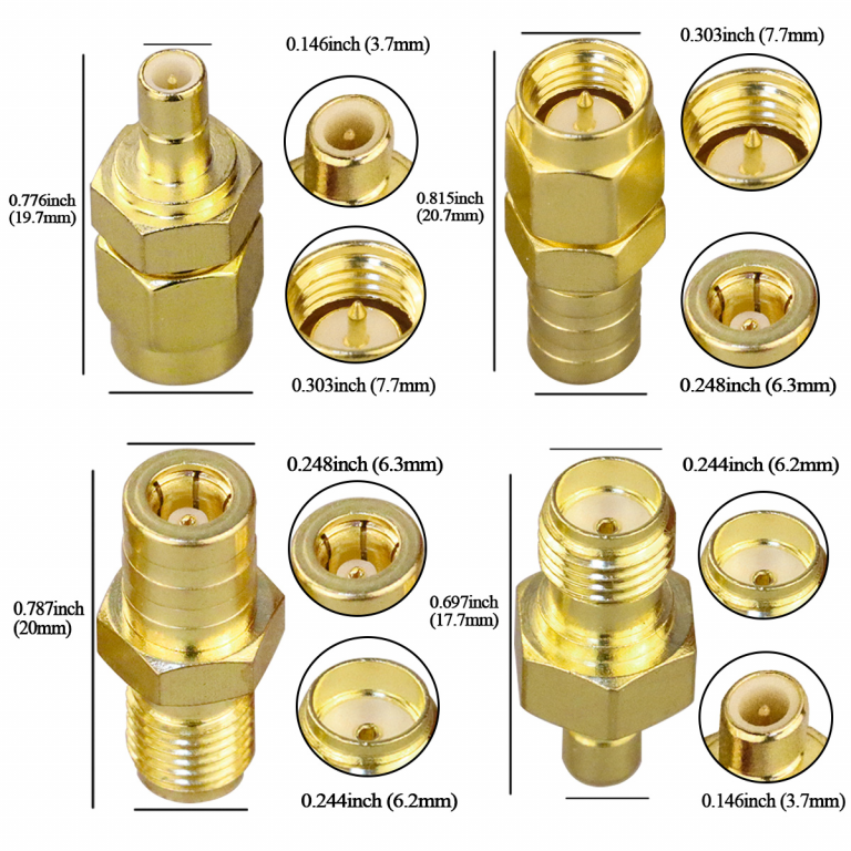 Tipo e dettagli: kit connettori da SMA a SMB ; Colore: Oro; Materiale: ottone puro; Ti aiuta a connettere SMA al dispositivo SMB.