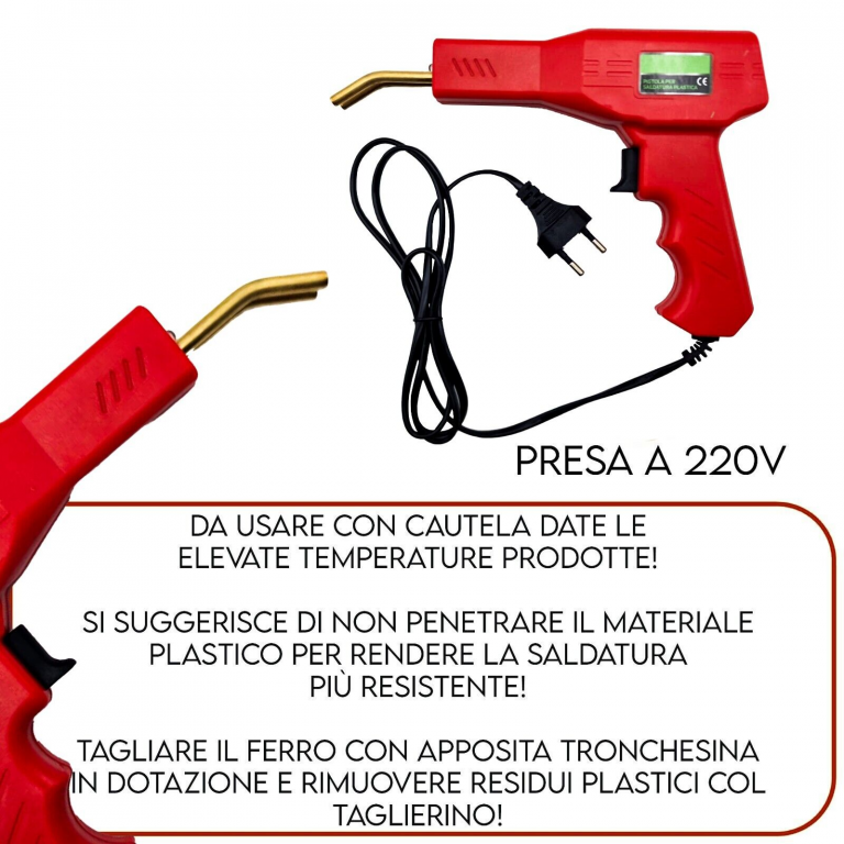 Perfetta per riparazioni su parti in plastiche dei veicoli, come paraurti e varie carene interne. Raggiunge temperature elevatissime potando quasi ad incandescenza la graffetta inserita, penetrando il materiale e raffreddandosi immediatamente con esso!