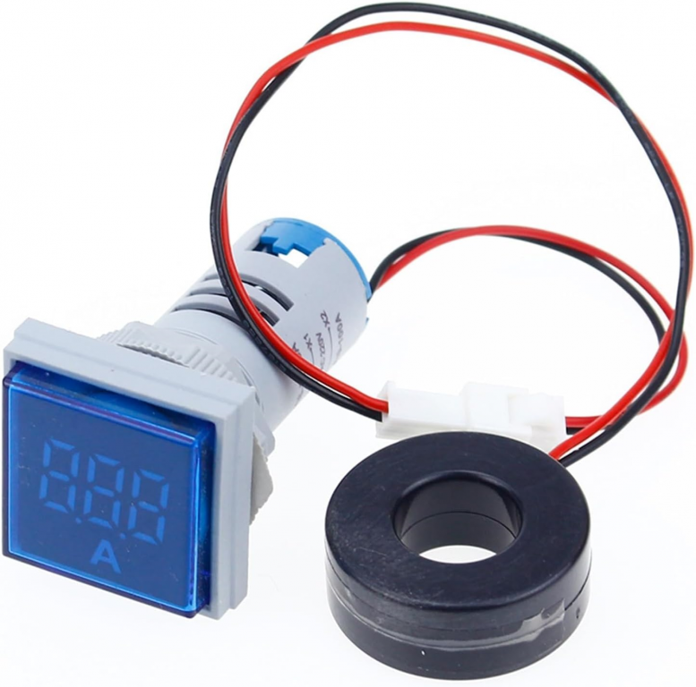 AMPEROMETRO DIGITALE DA PANNELLO FORO 22mm AC 0-100A BLU MAX 380VAC