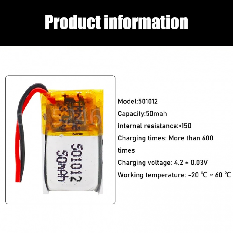 BATTERIA AI POLIMERI DI LITIO LiPo PIATTA 3,7V 50mAh 501012