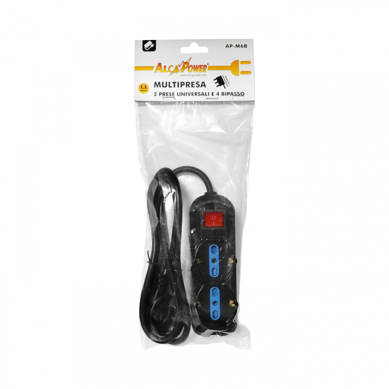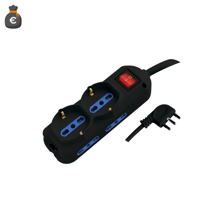 MULTIPRESA CIABATTA CON INTERRUTTORE 6 POSTI NERA CAVO 1,5MT