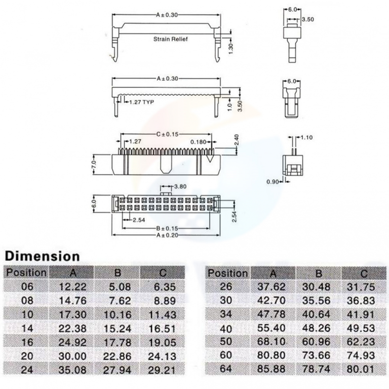 CONNETTORE FEMMINA A PERFORAZIONE D'ISOLANTE PER CAVO FLAT 44 POLI PASSO 2,54