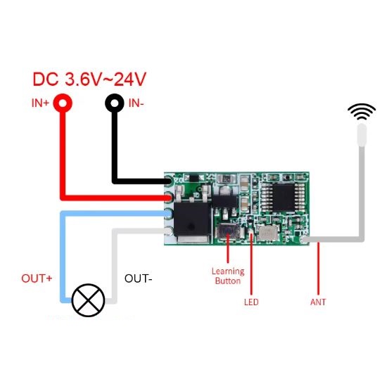 MODULO CENTRALINA RICEVITORE RF 433Mhz 3,7V-24VDC 5A FINO A 20 RADIOCOMANDI