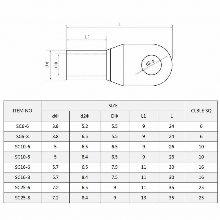 CAPICORDA OCCHIELLO DI POTENZA FORO 8,4mm CAVO 16mmq