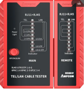 Tester per cavi Lan di rete RJ45:Il Tester per cavi di rete AMPCOM è progettato per la rete Lan RJ45, fornendo capacità di test complete e accurate per la tua rete.