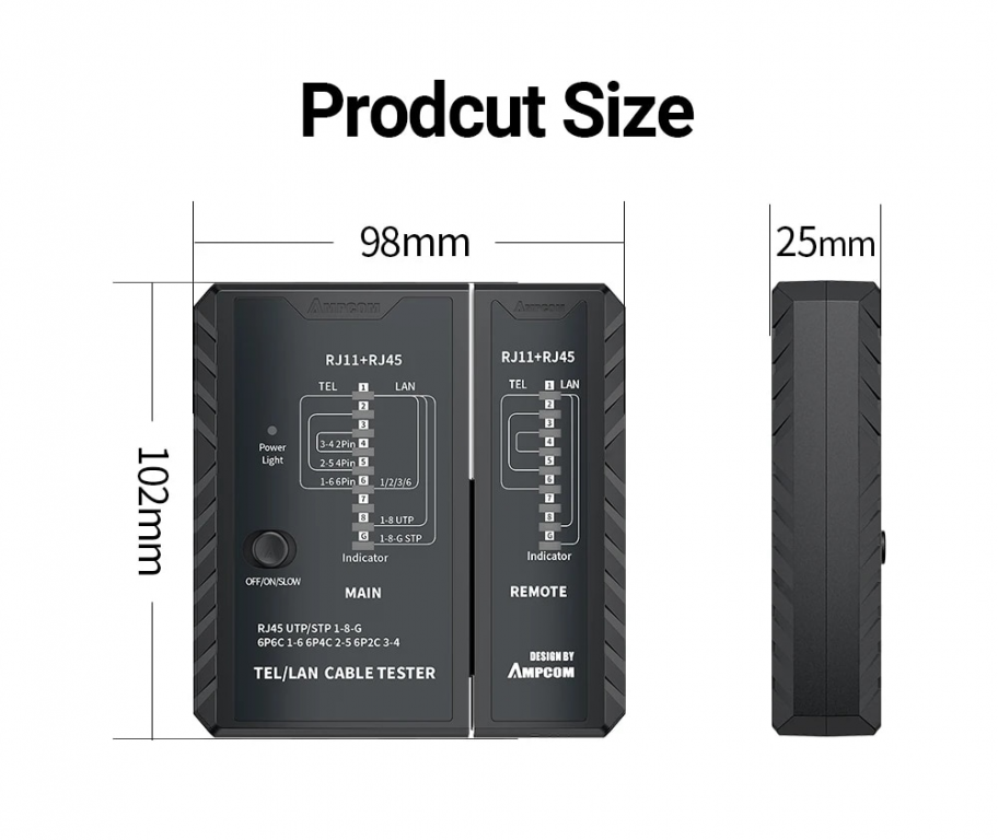 Tester per cavi di rete AMPCOM rj45 RJ11 rete LAN Ethernet RJ45 strumento per Tester per cavi LAN strumento di rete riparazione di rete