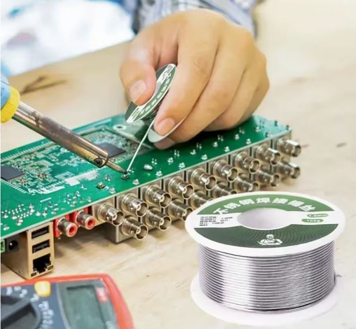 Questo stagno è particolarmente buono in quanto all'interno ha un'anima di flussante che si scioglie a contatto della punta del saldatore e agevolerà notevolmente l'operazione di saldatura.