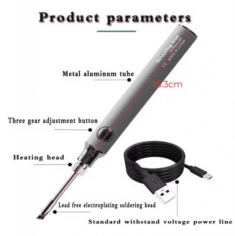SALDATORE A STILO RICARICABILE 5V 8W. PUNTA REMOVIBILE, IN DOTAZIONE CAVO DI RICARICA USB TYPE-C E ROCCHETTO DI STAGNO