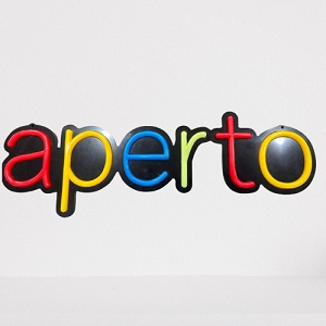MINI INSEGNA LUMINOSA MULTICOLORE PAROLA "APERTO"